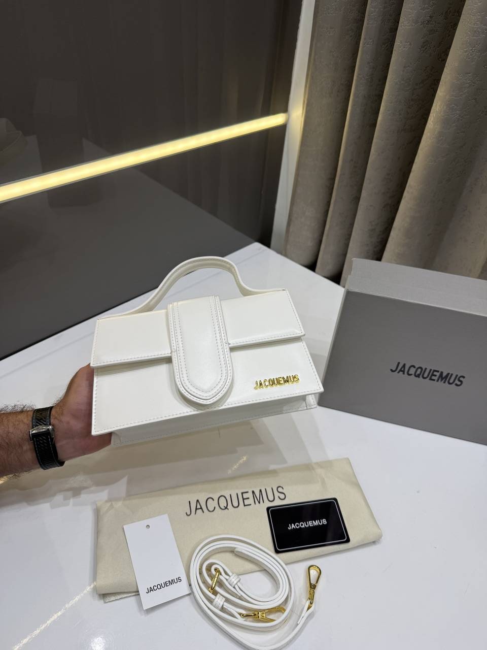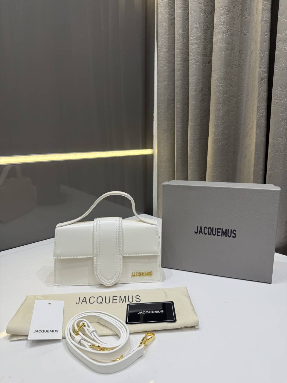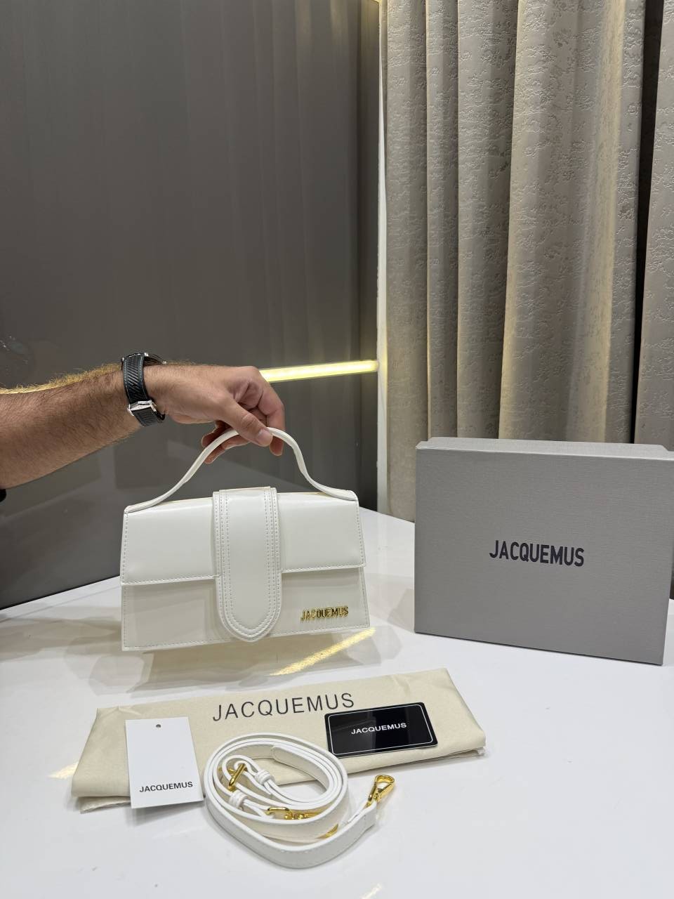 • JACQUEMUS WHITE LE GRAND BAMBINO PREMIUM HANDBAG WITH OG BOX